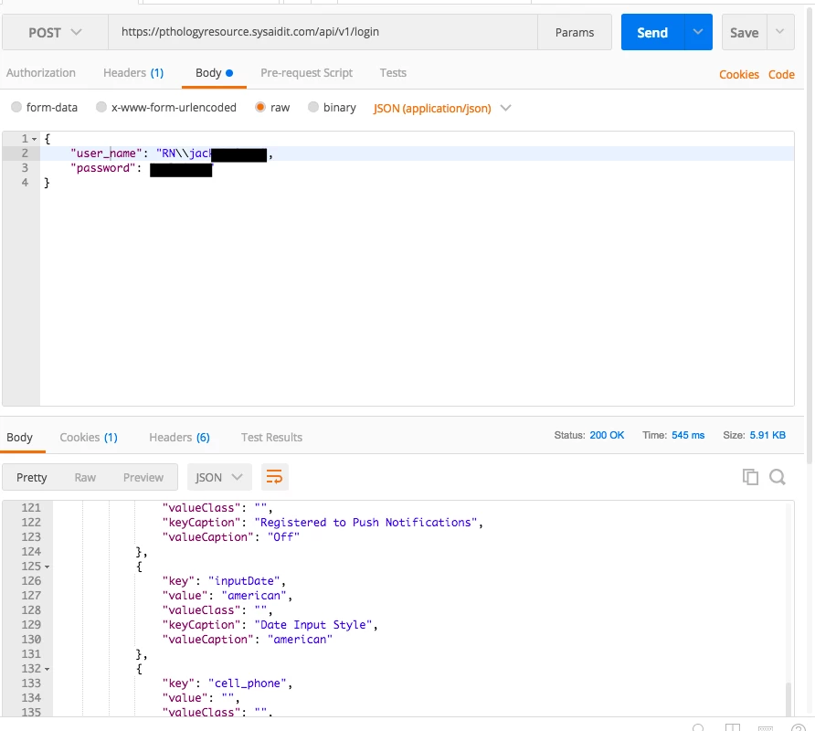 Problem using the sysAid API using POSTman