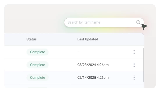 Easily search for data items within each dataset, including service records, knowledge base articles, verified answers, documents, websites, SharePoint connection, and AI agents using dedicated search bars on every page.